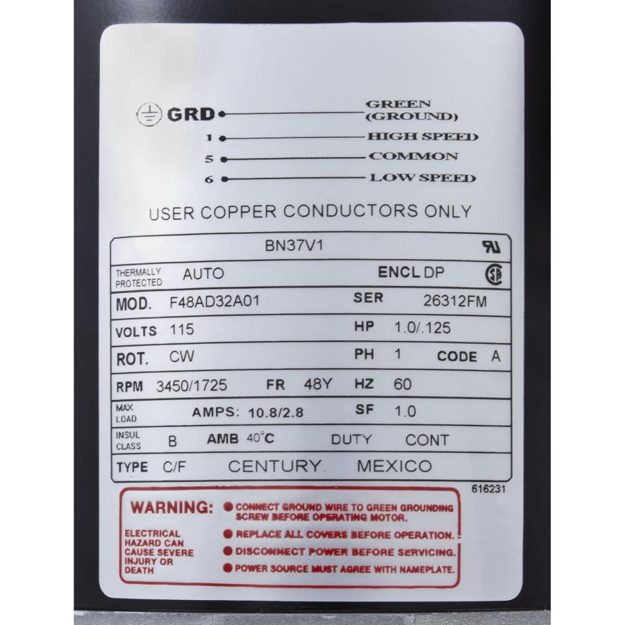 The Century SDS1102 is a Sta-Rite Direct Replacement Spa Motor. It features a 1 ~ 1/8 HP, 115 Volt, 10.4 / 3.6 Amp, 2 Speed, 3450/1725 RPM motor. It replaces the Sta-Rite Model# - K48L2A1.