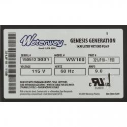 The 321JF10-0150 is a 1.0 HP, 115V single-speed Waterway Genesis Generation bath pump used primarily in high-end whirlpool and jetted bathtub systems