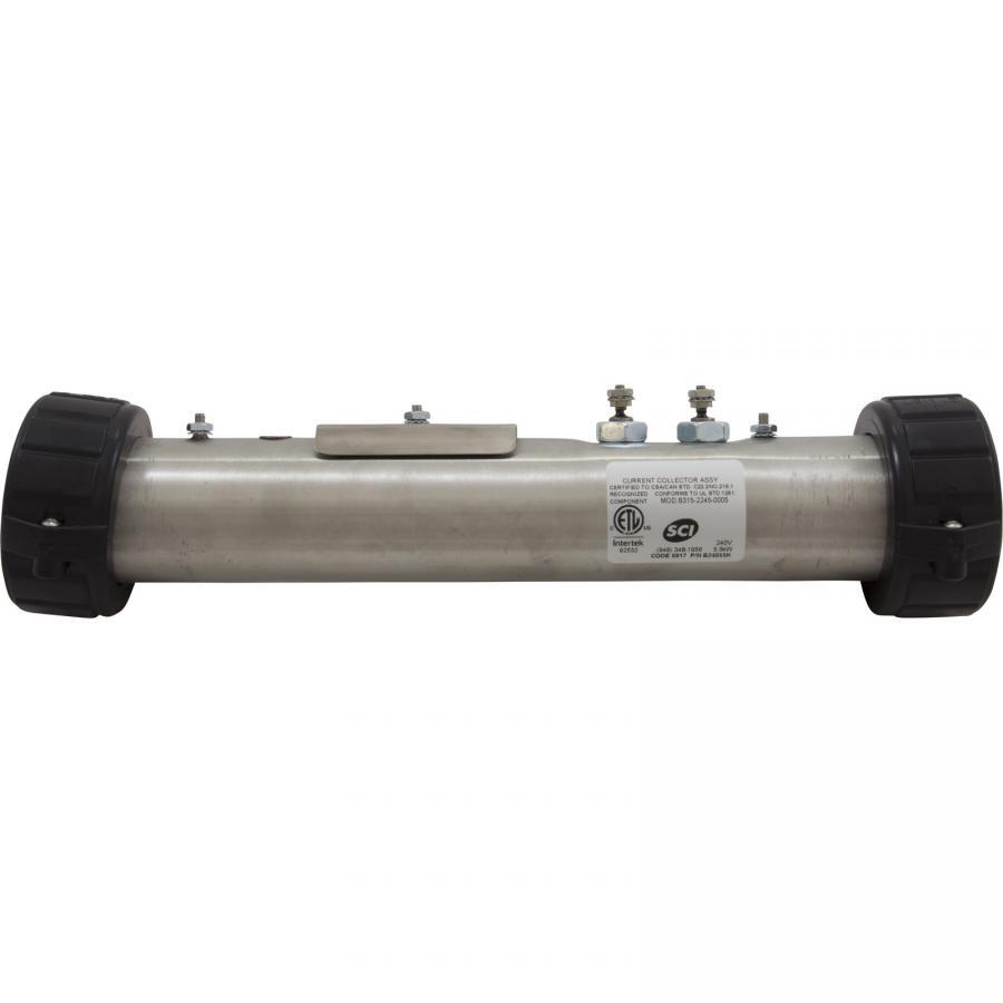 Stainless steel flo-thru replacement heater assembly. Measures 12" x 2" and has (2) mounting studs, pressure switch tap at 0 degrees from the heater terminals, external thermowell and a 5.5kW element. Commonly found on the ACC (Applied Computer Controls) STMD1000 series control system. Pressure switch not included