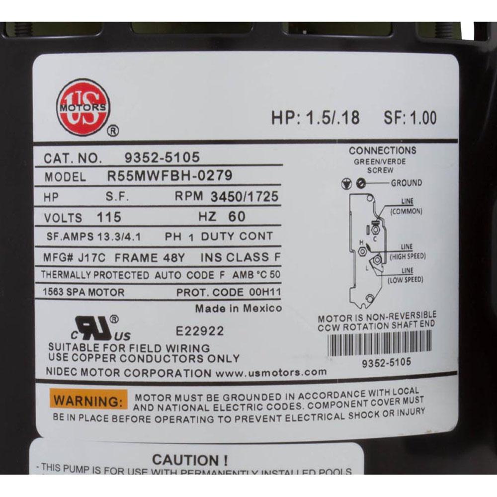 Pump, Aqua Flo FMHP, 1.5hp, 115v, 2-Spd, 48fr, 1-1/2", OEM
