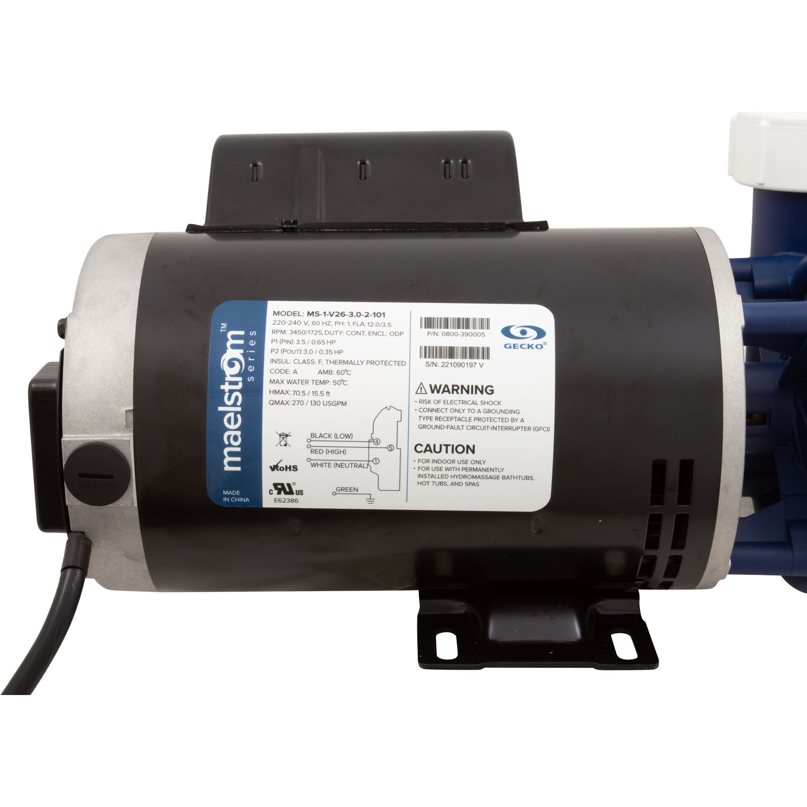 Here are some of the key features of the 0800-390005 spa pump: