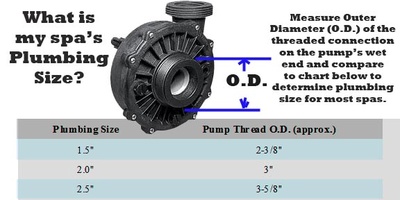 Spa Pump Features: Fine tuned impeller that moves water through the system with maximum performance 2" intake and discharge 56-frame motor for added strength Thermally protected to extend life expectancy of motor